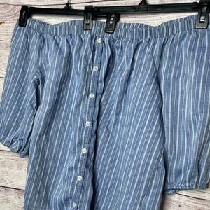 Torrid Off Shoulder Boho Blue And White Striped Top Size 2X Plus
