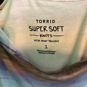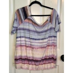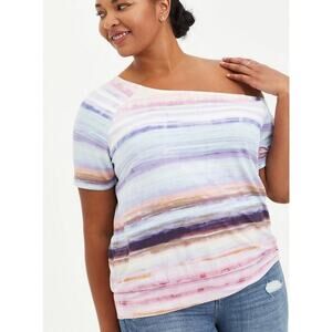 Torrid off-shoulder super soft tee in watercolor stripes of pinks and purples. Very good condition, smoke free home.