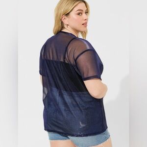 Torrid Oil Slick Mesh Crew Neck Relaxed Tee Blue Metallic Shimmer Sheer Shirt 3X