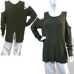 Torrid Olive Green Cold Shoulder Lace Up Long Sleeve Sweater Sz 2X