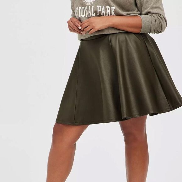 Torrid olive green Faux Leather Skirt, Size 6X, No flaws (PP)