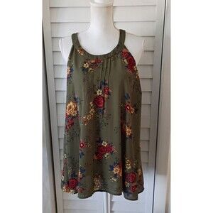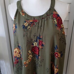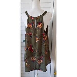 Torrid Olive Green Floral Halter Neck Tank Top Georgette 2 2X