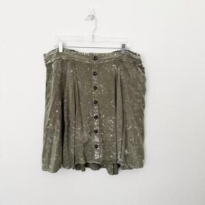 [Torrid] Olive Green Mineral Wash Button Front Skirtall A-Line Mini NWT Size 1X