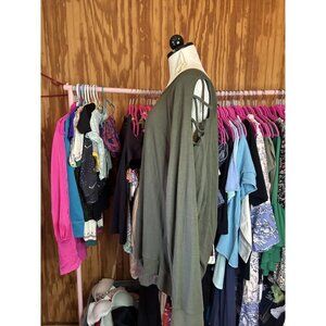 This listing is for Torrid Olive Lattice Long Sleeve Sweatshirt Green Knit Size 3 (3X) Warm