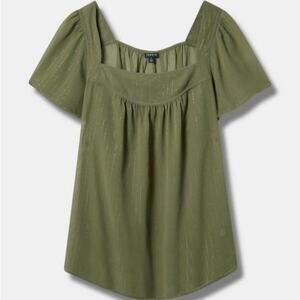 Torrid Olivine Crinkle Chiffon Flutter Sleeve Top