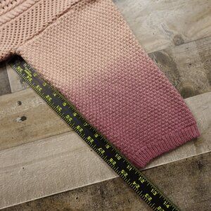 Make a statement with this cozy and eye-catching ombre sweater from Torrid. Featuring a soft, chunky cable knit in a beautiful blush-to-burgundy gradient, this short sleeve pullover is perfect for layering in transitional seasons. The open-knit panels and V-neckline add texture and breathability, while the longer short sleeves make it flattering and versatile.