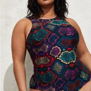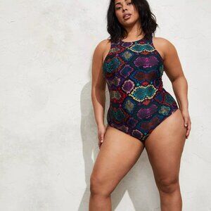 Torrid One 1 Piece Swim Suit High Neck Shimmer Snake Skin Print Plus Size 4X