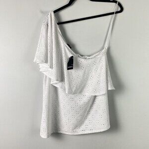 Torrid One Shoulder Ruffle Top Size 2X Eyelet Jersey White