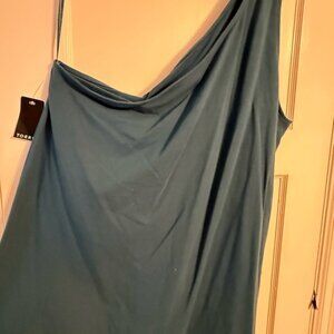 Chic one shoulder dress by Torrid. Flattering teal color. Ideal for stylish outings.