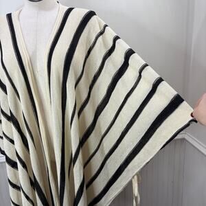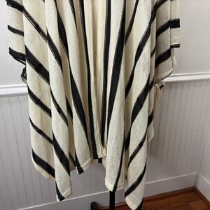 Torrid One Size Ruana Cardigan Sweater Ivory & Black Stripe Kimono Poncho Boho