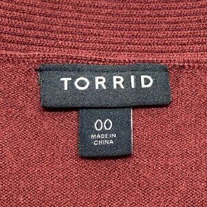 Torrid Open Front Cardigan Women's 00 M/L Maroon Tight Knit Duster Pockets EUC