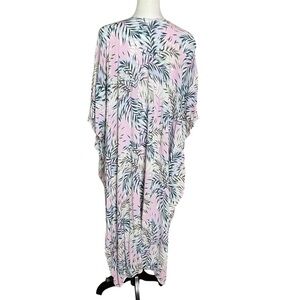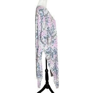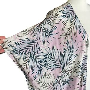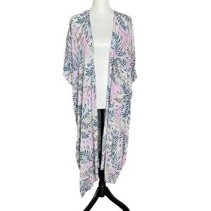 Torrid Open Front Kimono Duster Swim Cover Up Palm Leaf Floral Pink Women’s M/L