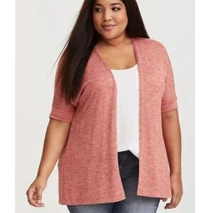 Torrid Open Front Knit Cardigan Light Sweater Short Sleeve Plus Size 5X Coral Pink Peach