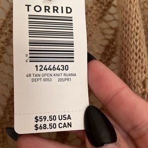 Torrid Tan Open Knit Ruana nwt never worn still in packaging from torrid smoke free home
