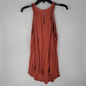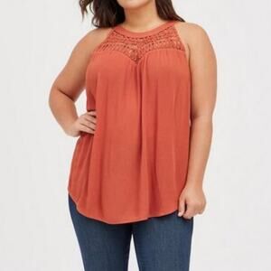 Torrid Orange Crinkle Gauze Crochet Detail Halter Tank 1X