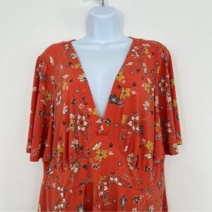 Torrid Orange Floral V Neck Flutter Sleeve Fit & Flare Dress
