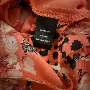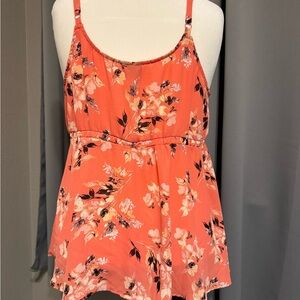Stand out in this Torrid coral cami top, featuring a bold floral print with a fun leopard ruffle neckline for a fierce twist. This lightweight sleeveless blouse includes adjustable straps, a stretchy waist, and a charming tie-back detail that flatters your shape. Made from breathable 100% polyester, it's perfect for warm weather or layering under jackets year-round.