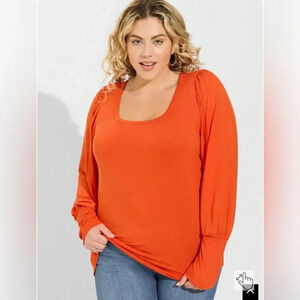 Torrid Orange Super Soft Square Neck Long Puff Sleeve Top 1X I30