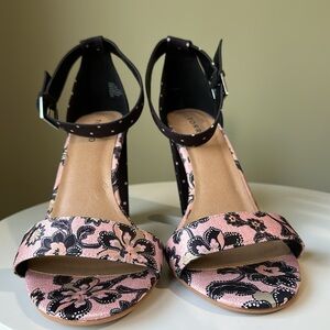 Torrid Pink & Navy Paisley Dot High Heel Sandals.