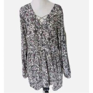 Torrid Paisley Print Lace-Up Babydoll Challis Blouse Sz 3 (3X) Black Pink LS