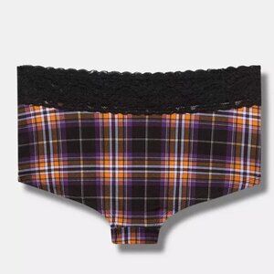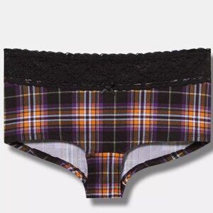 Torrid Panties 0X L-Boyshort Panty Tartan Plaid Mid Rise Underwear Lace Trim New