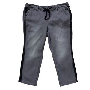 Torrid Crop Pull on Boyfriend Jeans Straight Mid-Rise Gray/Black Stripe Size 2, 18 / 20, 2X with some Stretch