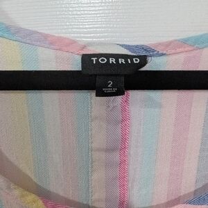 Torrid Pastel Stripes Abby Georgette Button Back Short Sleeve Blouse Size 2