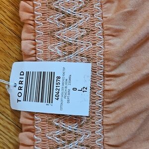 Torrid Peach Off-Shoulder Top, Embroidered Neckline, Sz 0 (12, L), NWT!