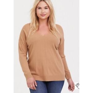 Torrid Peach Pink Pullover Drop Shoulder Sweater V Neck Rayon Blend. Stock for fit. NOT COLOR.