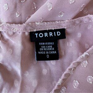 Torrid | Peach Swiss Dot Front Ruffle Chiffon Blouse | Size 0