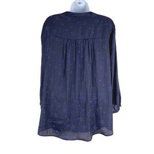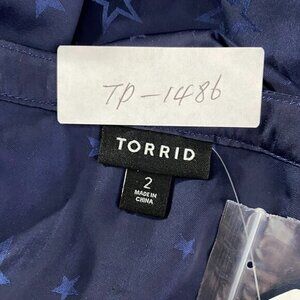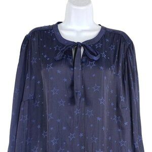 Torrid Peasant Blouse Charmeuse Jacquard Star Navy Blue Tie Neck NWT 2X Flawed