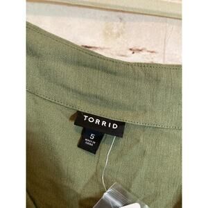 Torrid Peasant Top Womens 5X Olive Eyelet Square Neck Crinkle Plus Cottage