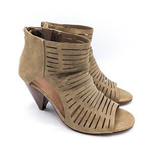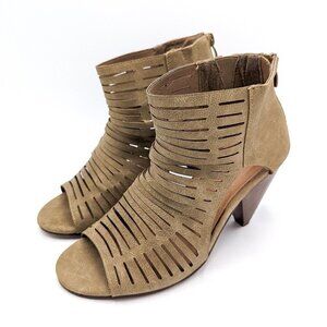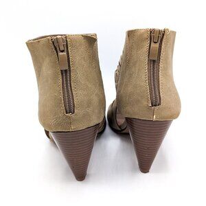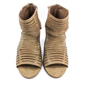 Torrid Peep Toe Caged Cuban Heel Booties Taupe Stacked Wood Sz 6.5 (37) WIDE