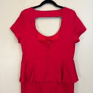 Torrid Pencil Bodycon Mini Dress 14 Red Retro Peplum Open Back Cap Sleeve Career