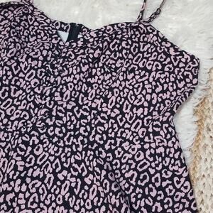 A sweetheart neckline adds a famine touch to this alluring peplum top that features a lace-up front and leopard print.