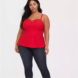 Torrid Peplum Bengaline Ladder Detail Cami Top Plus Size 4 Sweetheart Neck Red