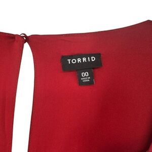 Torrid Peplum Blouse Solid Red V Neck Long Sleeve Valentines Torrid 00 US M/L 10