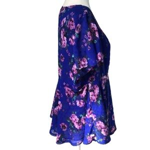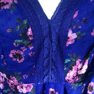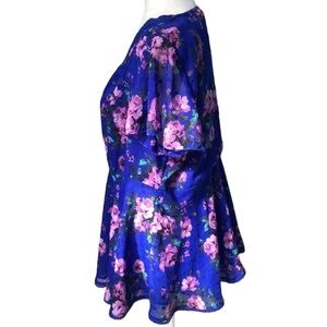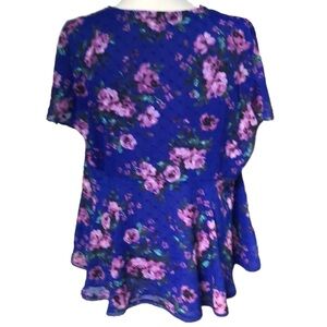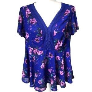 Torrid Peplum Chiffon Clip Dot Lace Blue Floral Inset Top Size 00/Medium