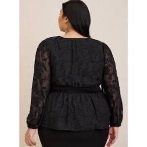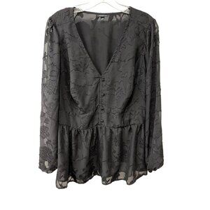 Torrid Peplum Chiffon Clip Floral Blouson Sleeve Top Women’s Plus Size 2 18-20