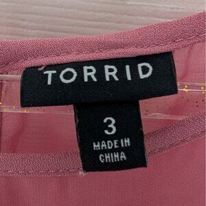 Torrid Peplum Crepe Mesh Inset Babydoll Blouse Womens Plus Size 3X Mauve Pink
