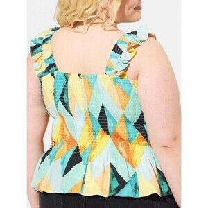Torrid Peplum Crinkle Gauze Smocked Tank Top Multi Geo Plus Size 3X …