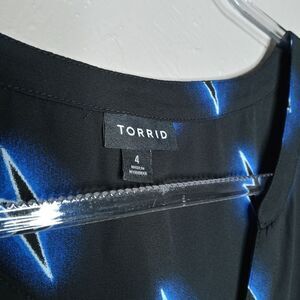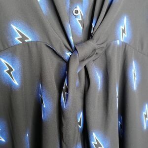 Torrid Peplum Georgette Lighting Bolt Button Front Tie Top