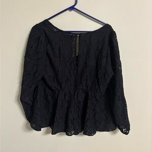 Torrid Peplum Lace Puff Sleeve Top Plus Size 1X Black Sweetheart Neckline