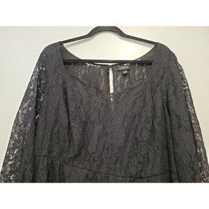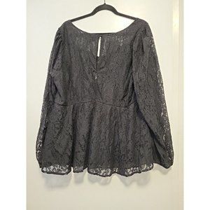 Torrid Peplum Lace Puff Sleeve Top Plus Size Goth 2X Black