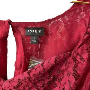 Torrid Peplum Red Lace Puff Sleeve Top Size 2X NWT