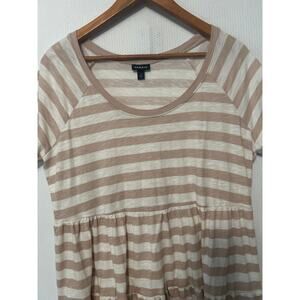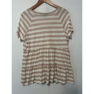 Torrid Peplum Tee Shirt Tan White Striped Babydoll Top Short Sleeve Casual 1X