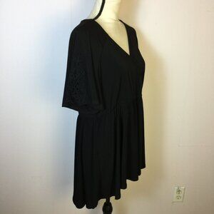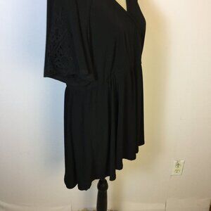 Torrid Peplum Wrap Blouse Top 2/2X Womans Plus Black Knit Short Sleeve Lace Trim