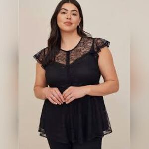 Torrid Peplum Black Lace Ruffle Sleeve Top