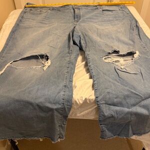 Torrid Perfect Wide Leg Vintage Stretch Jeans 30R – Light Wash Distressed Knees