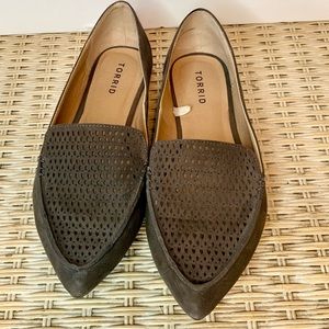 Torrid Perforated Pointed Toe Faux Suede Flats Shoes Gray Size 8 Wide